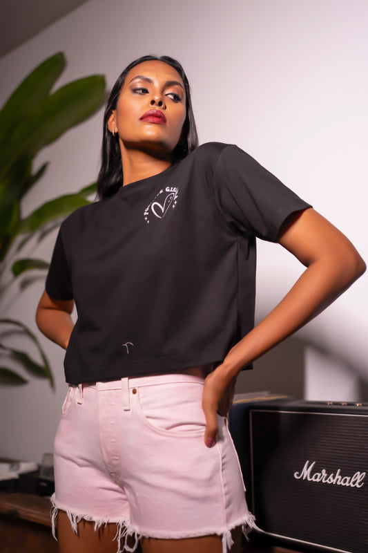 Black Cropped Top with “Positive Girl Era” Print (Front & Back)