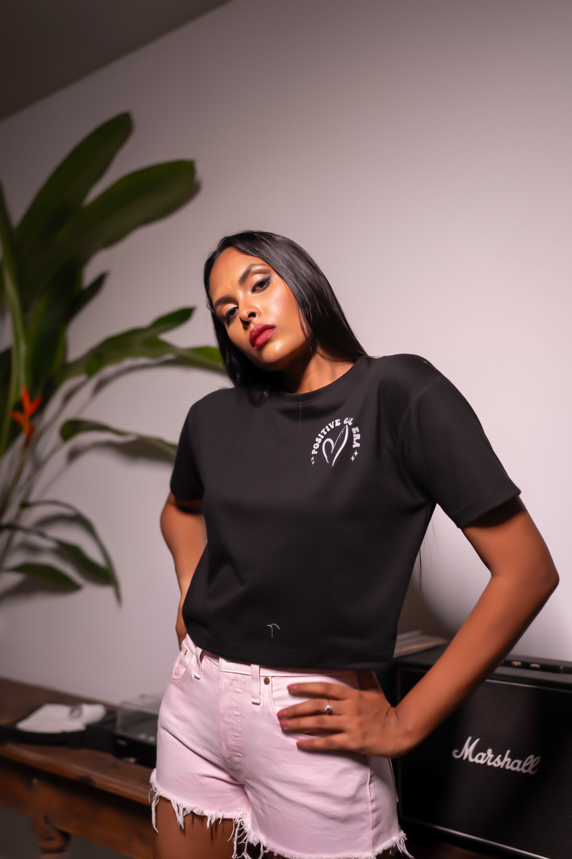 Black Cropped Top with “Positive Girl Era” Print (Front & Back)